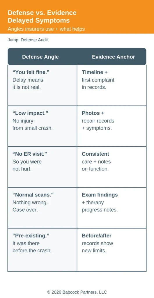 Defense Audit: What Insurers Usually Argue About Delayed Symptoms