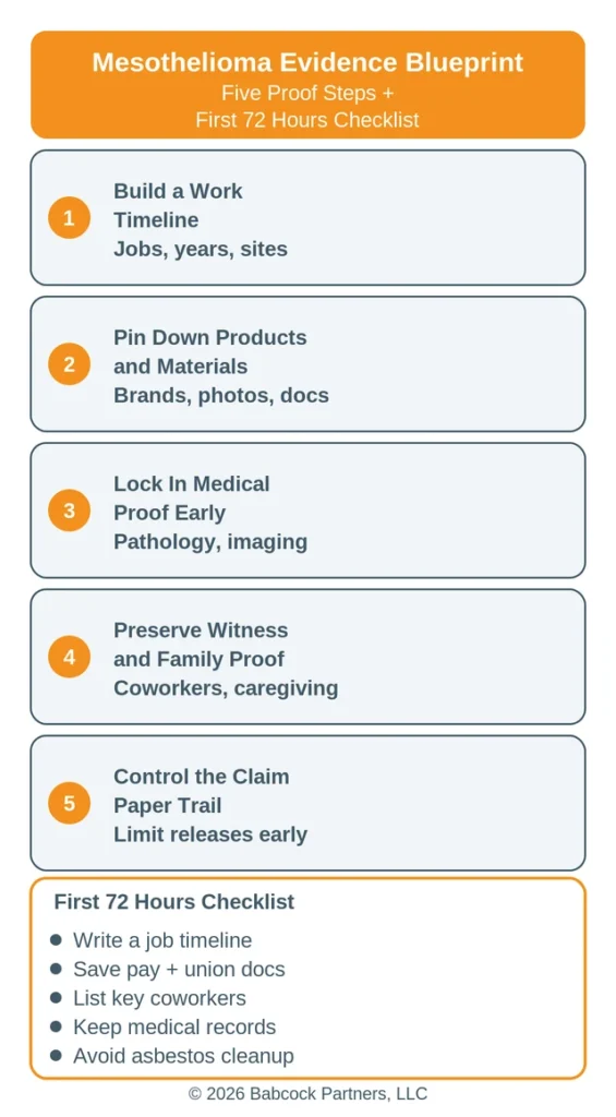 In real mesothelioma cases, the hardest part is rarely a single missing record; it is the accumulation of small gaps that let the defense create doubt. We see families do better when they treat the timeline like an evidence project, not a memory test.